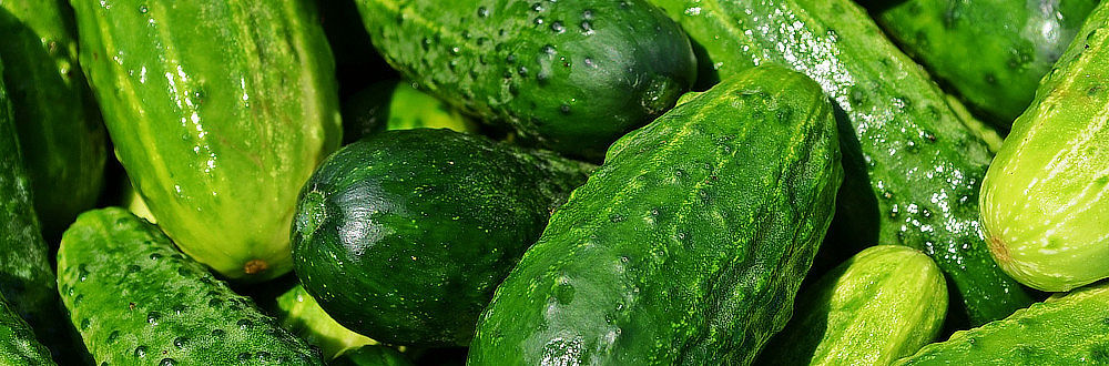 Okurky od místních pěstitelů jsou k dispozici od června do poloviny září. Hadovky ze skleníků jsou k mání dříve i déle.
