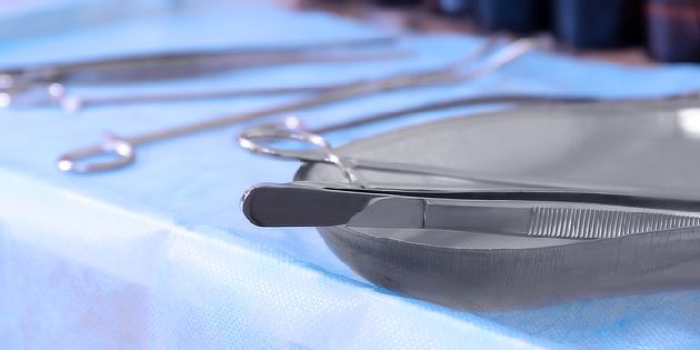 Obrázek 2: Kyreta je chirurgický nástroj používaný při kyretáži. Na této fotografii je vydezinfikována a umístěna ve sterilním obalu. (Zdroj: https://commons.wikimedia.org/w/index.php?curid=32974174)