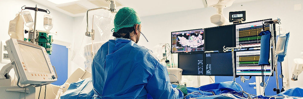 Elektrická kardioverze [3]: U pacientů s fibrilací síní, která přetrvává navzdory medikamentózní léčbě, je při této proceduře obnoven normální srdeční rytmus vnějším elektrickým impulzem. Kardioverze pomocí elektrod připojených k hrudní stěně probíhá v anestezii trvající jen několik minut. Tato procedura se obvykle provádí ambulantně, tzn. pacient může ještě tentýž den opustit nemocnici.