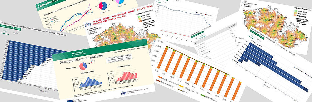 Záložka Psychiatrická péče v ČR obsahuje referenční data a indikátory kvality systému péče o duševní zdraví jako celku a základní parametry a data o lůžkové i ambulantní péči.